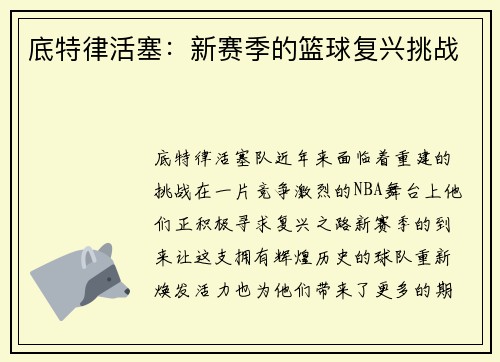 文章摘要:灰熊与鹈鹕西南赛区的竞争正在成为NBA未来的焦点之一。两队在年轻核心球员的带领下,逐渐成为联盟中最具潜力的队伍之一。本文将从阵容建设、战术体系、领导力与球员发展等多个方面,探讨灰熊挑战鹈鹕西南赛区内战的未来走向,分析两队在各自的优势与劣势中如何影响赛区内战的主宰地位。最终,文章将总结出谁能...